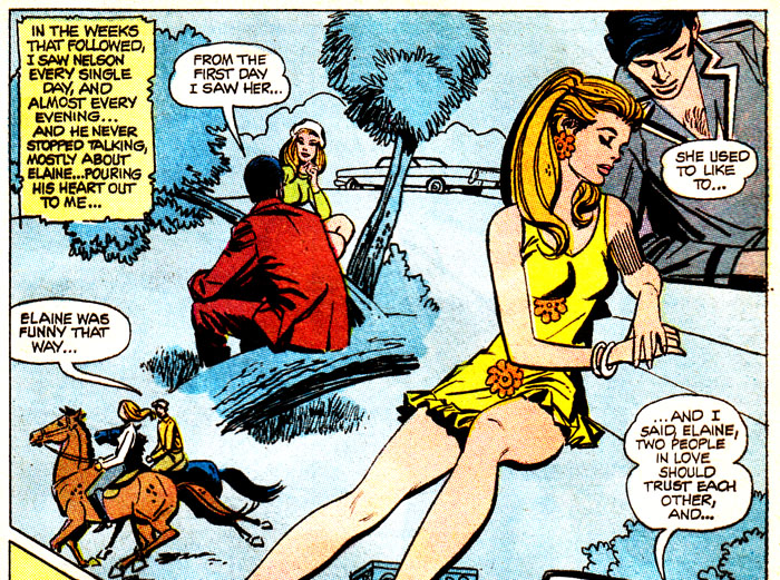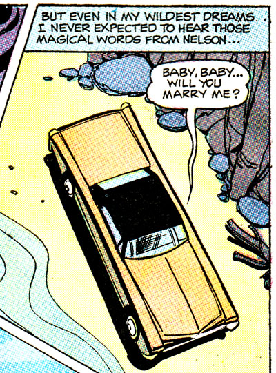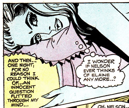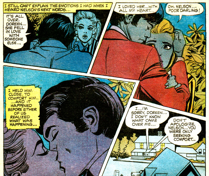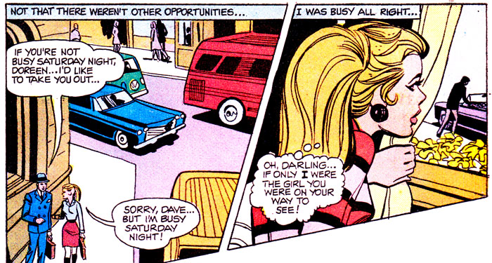 In the weeks and months to come Doreen finds solace in her many hobbies, hobbies such as turning down men who aren't Nelson, and stalking Nelson. Not shown: planting bugs in Nelson's bedroom, following Nelson around from a safe distance, leaving cow's hearts stolen from a butcher shop on Nelson's doorstep.