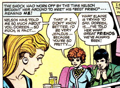 Inevitably, Tone Deaf Tony gets engaged to some other girl, which makes me wonder if he's ever even been on one actual date with Doreen or if the entire relationship has been in her head this whole time.