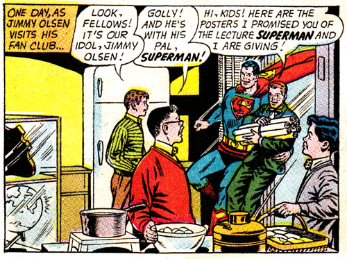 In the Jimmy Olsen fan clubhouse, much like on Bizarro world, Superman is JIMMY'S pal, not the other way around!