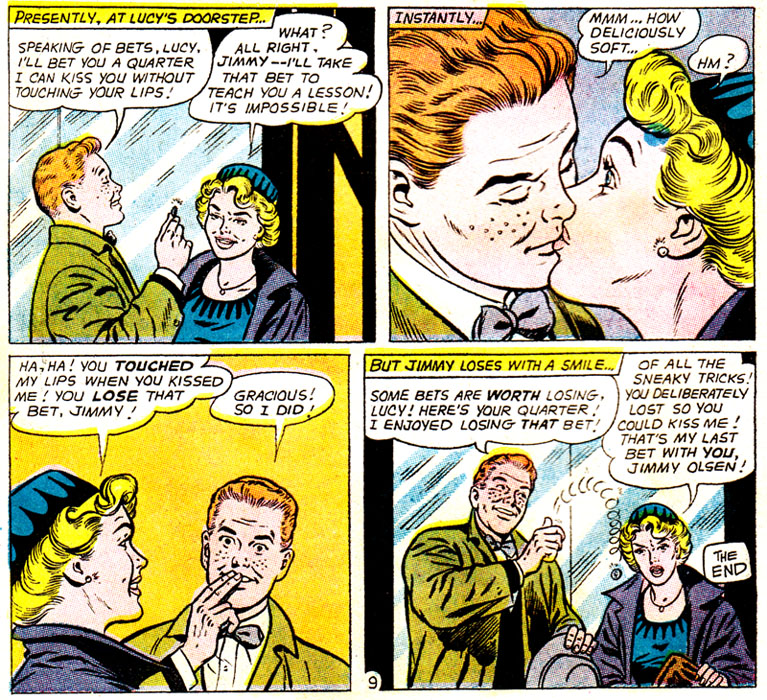 Lucy Lane, however, has learned that not only is Jimmy kind of a creep, he also thinks physical intimacy with her is worth exactly a quarter of a dollar.