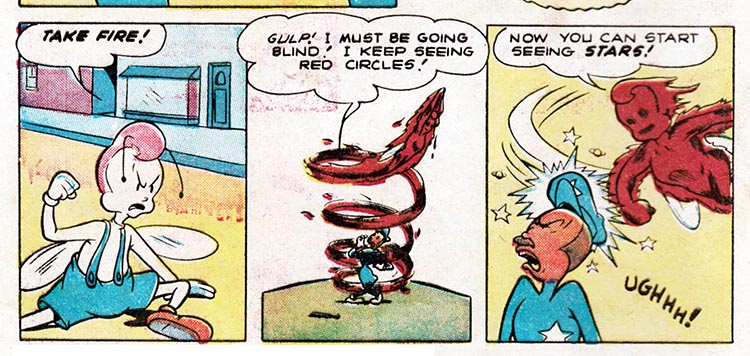 I've heard of knocking somebody's block off, but these Golden Age comics don't fool around!
