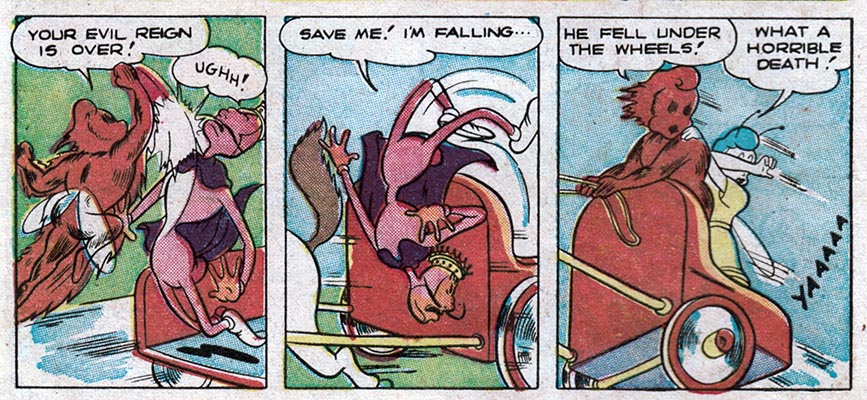 YAAAAA It wouldn't be a Golden Age comic without some sort of gruesome yet well-deserved death, now would it?