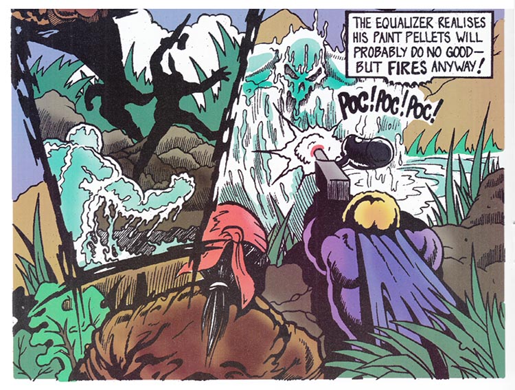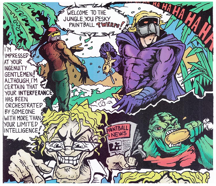 Just wait a while, big guy, wait for the amazing diabolical plan of this crazed madman to be fully unleashed in the next thrilling issue of... did this one get another issue? Surely they didn't think they were going to start an entire universe of paintball-themed comics?!