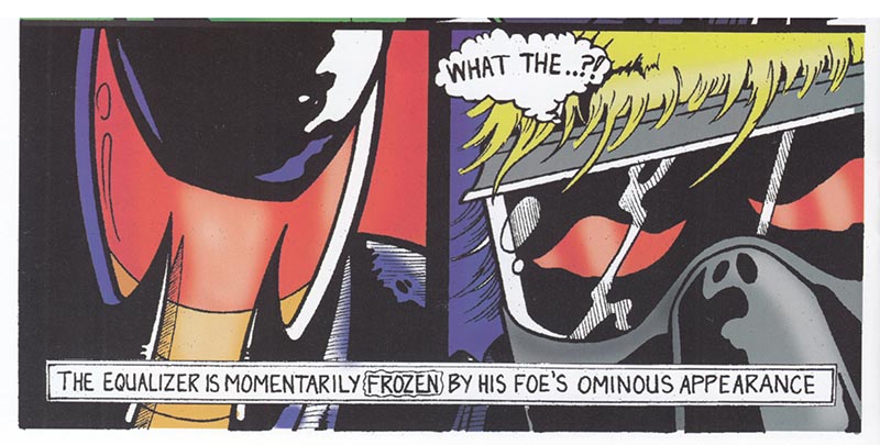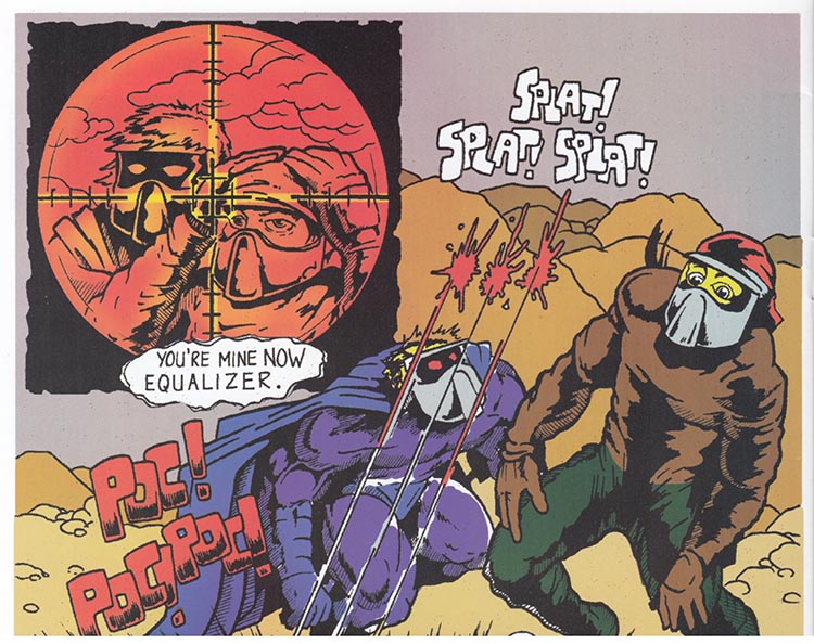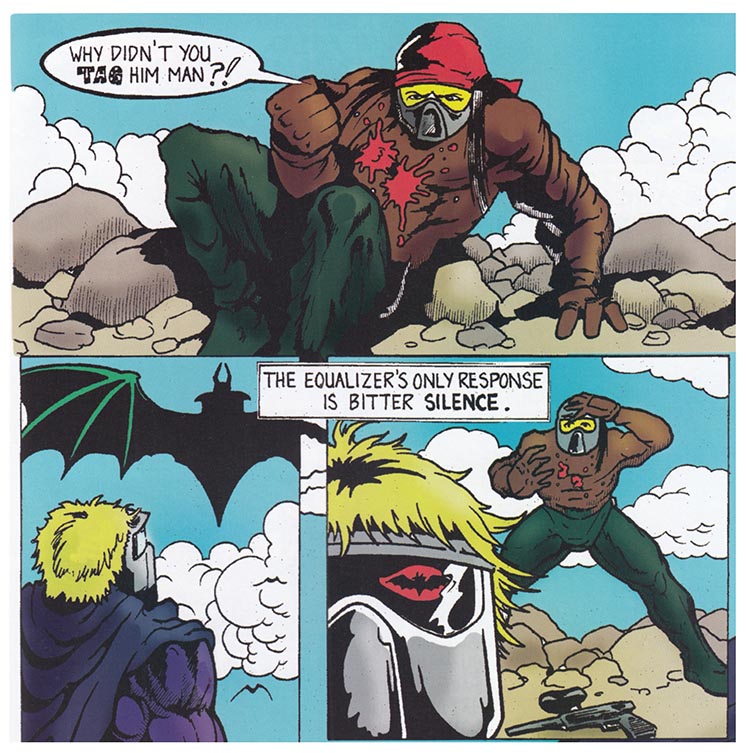 Good question! Why DIDN'T The Equalizer, perhaps the most ripped and imposing "stud" to ever don the protective gear of the pro paintballer, why didn't he demonstrate some of his paintball equalizing skill in the comic that bears his name?