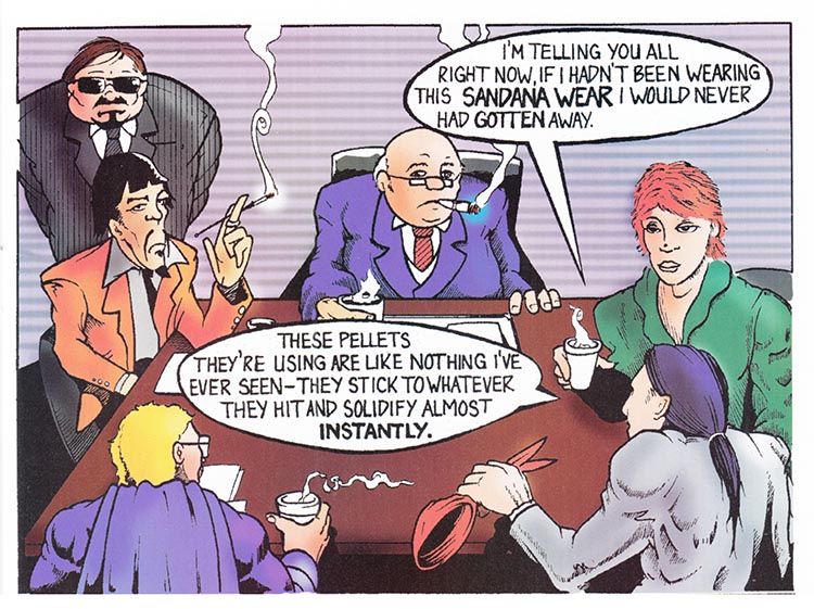 Twelve pages into this exciting paintball equalizing comic book and we finally get someone using a paintball gun, which the comic book immediately dismisses by telling us it probably won't do any good. Here's a handy tip from the advertising world - try selling your products by putting them in situations where they are actually useful!