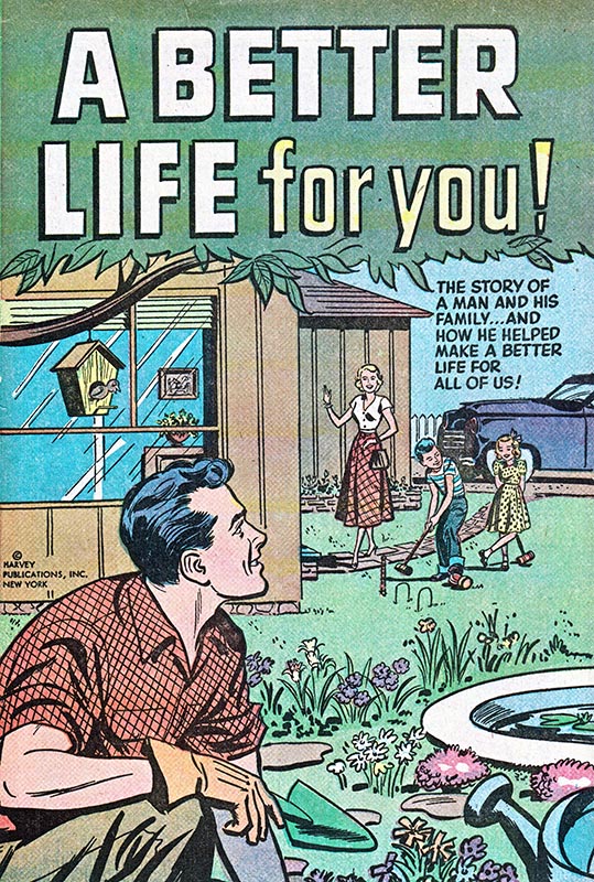Do you want a better life? Sure! We all do. But how can we get that better life as midcentury America flexes its industrial muscles, yawning as it greets a new day filled with new consumer products and new markets? Well, comic books may have the key. And we don't mean buying a lot of comic books, throwing them into a giant pile, and wallowing around in them, which is only PART of a better life.