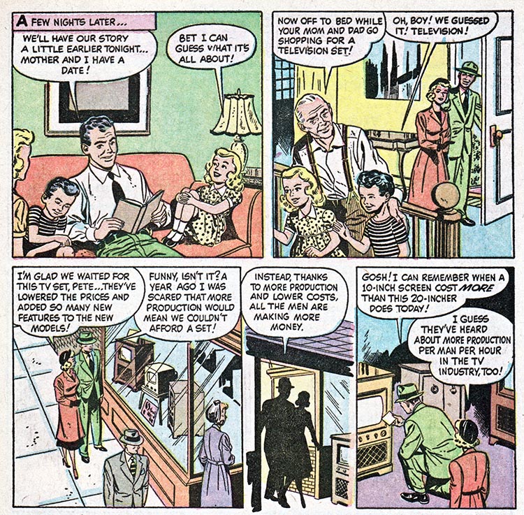 We've been making fun of this comic's rosy predictions of the future, but to be fair, TVs have in fact been getting larger while prices do indeed keep going down. Let's all praise the machines, I guess.