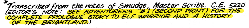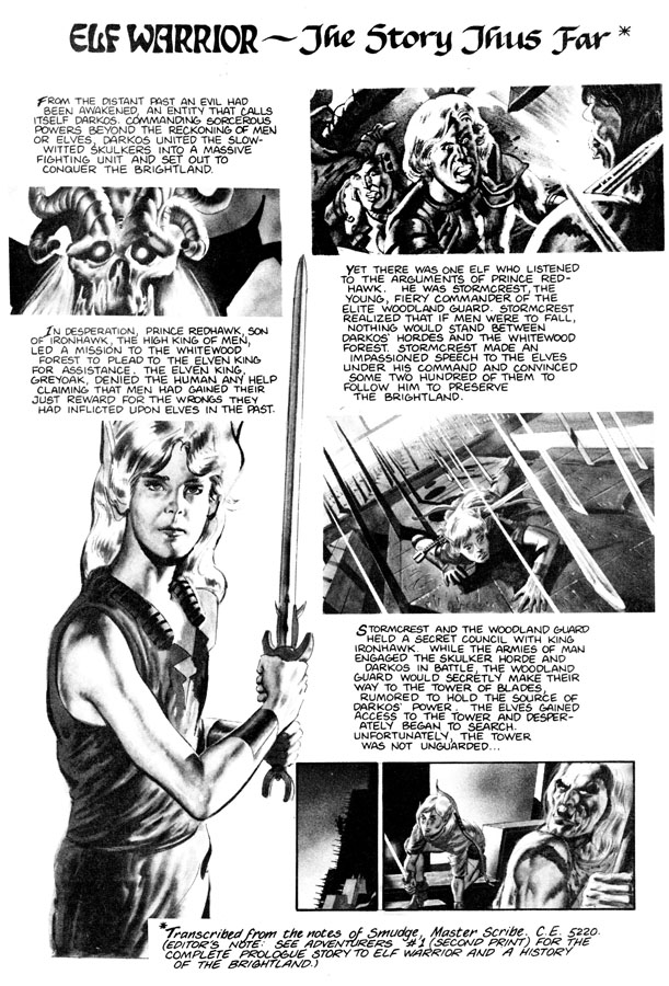 BUT FIRST let's meet our cast of pointy-eared warriors, who all seem to be modelled on the same 14 year old boy wearing slightly different wigs. As with all comics in the "this D&D campaign would make a great story" genre, you must be sure to take notes of all the dumbass fantasy names and how they relate to one another, for future reference.