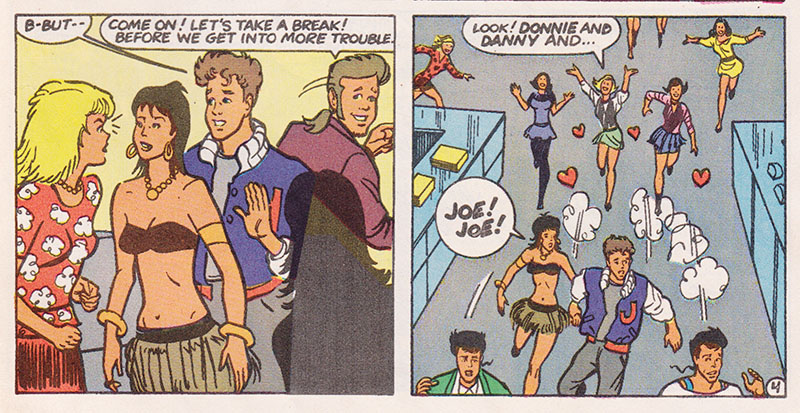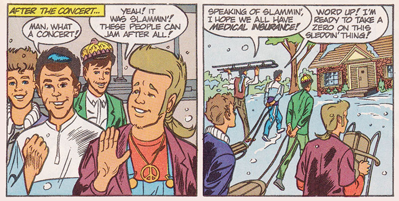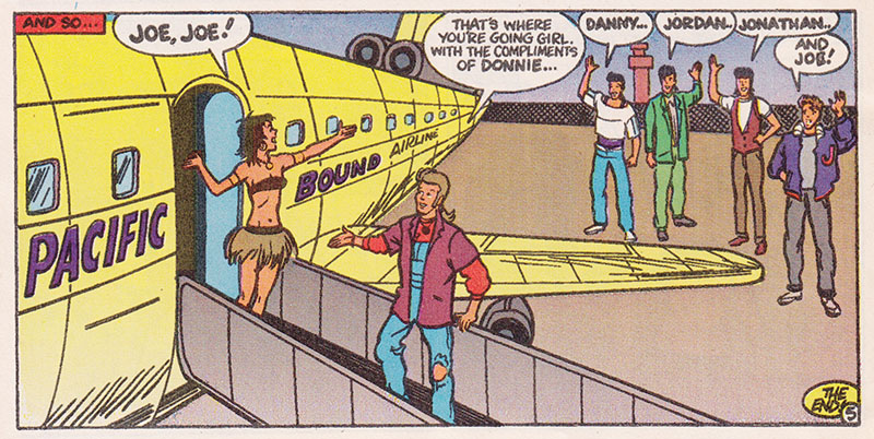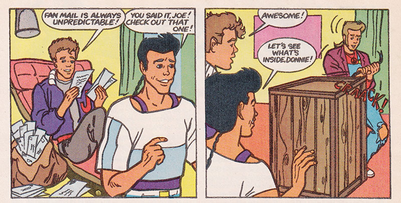 In the early 90s, Casper and Richie Rich publishers Harvey were coming out of a rough patch and recalibrating away from rich kids and ghosts and towards concepts American kids were more interested in, with a slew of licensed property comics bringing greater visibility to their line. Chief among these new titles were the New Kids, whose super popularity would undoubtedly drive sales to new heights... what's that? Harvey quit publishing comics altogether a few years later? But surely the comic book adventures of Jordan, Joe, Jon, Danny and Donnie were amazing, right? Right? So get ready for some gripping behind the scenes drama starring one of America's top recording acts as they navigate gruelling performance schedules, the demands of fame, and the temptations of stardom!