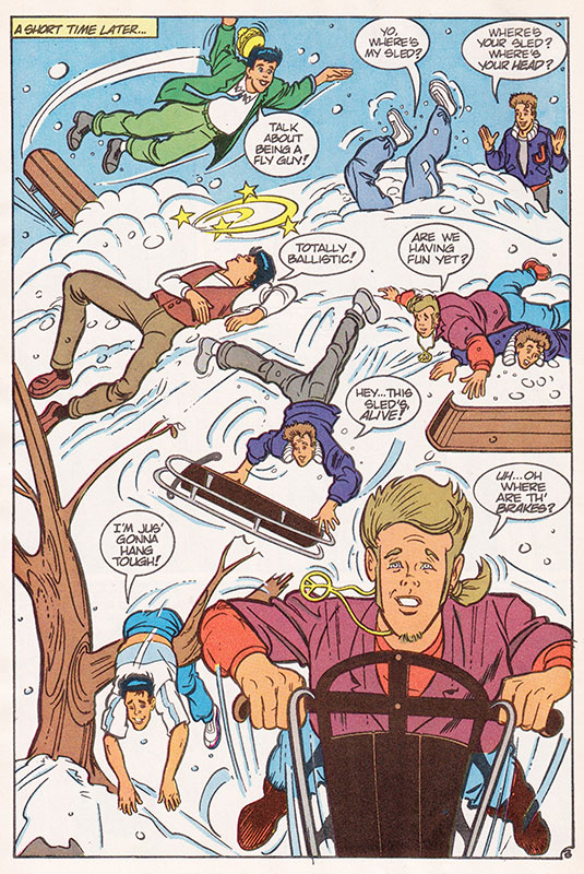 And it's a wacky montage of sled-related personal injury comedy as the New Kids show the lack of coordination and skill that's made them the top entertainment act in America.