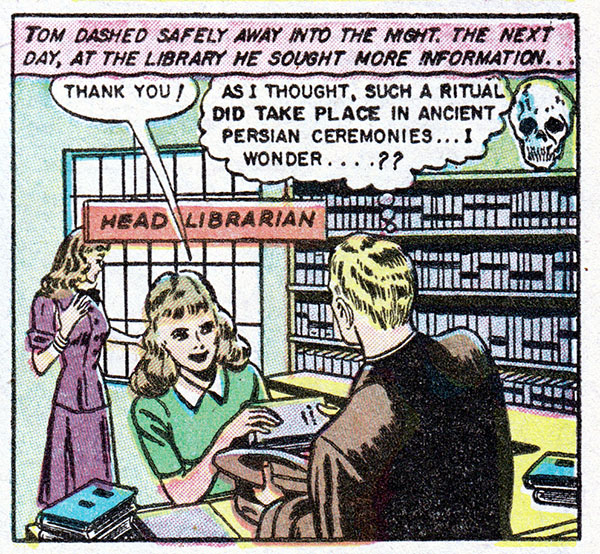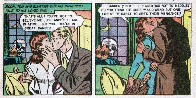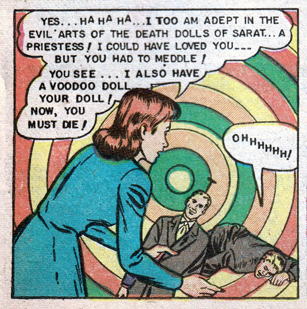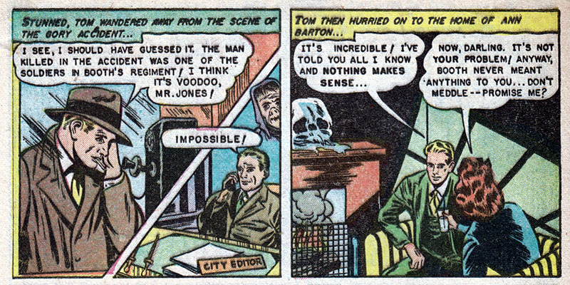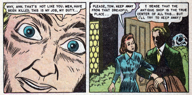 But Tom died, and then Ann somehow died too though we won't go into how that happened. And then the police showed up and they held up the voodoo dolls in such a way that the voodoo dolls and the actual corpses looked identical, which adds just that extra chef's kiss of confusion to this already confusing tale of Persia and voodoo and oil-prospecting Army grave robbers, decorated with randomly inserted skulls and scary heads. The big takeaway here is, stay out of antique shops, kids. Not even once!