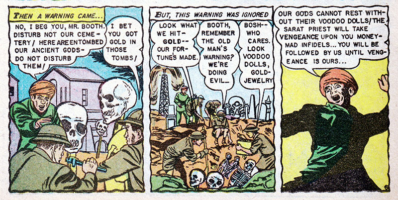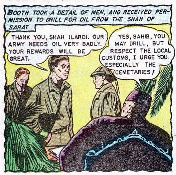 Thus began the bizarre tale of vengeance, colonialism, oil exploration, and the close cooperation between industry and government during a time of international crisis as the forces of Imperial Russia, the Ottoman and British Empires, and Imperial Germany clash in what even then was a vital region filled with geopolitical importance. And also voodoo, according to this dopey comic.