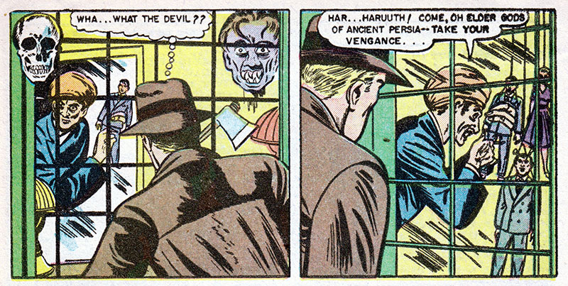 Modern man! Endlessly you busy yourselves in your skyscrapers and automobiles, struggling to forget that lurking underneath the thin veneer of civilization, the mystical nightmares and dark superstitions of your primitive past seek to burst forth into today! Or maybe you just need to fill seven pages in your 50s horror comic. Whichever.