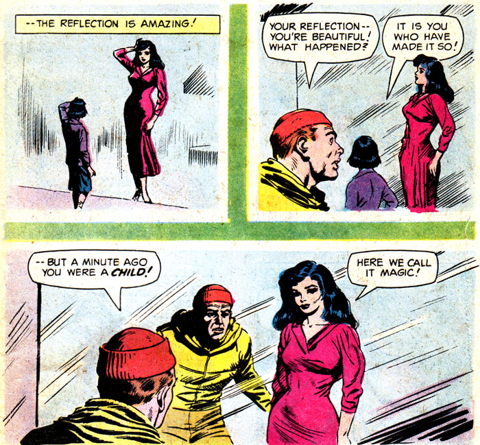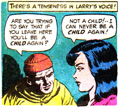 That's right Larry, lean in for a kiss with this person who was a ten-year-old a moment ago, not creepy at all. Luckily this is a Whitman comic so no actual action will happen, in any way, shape or form.