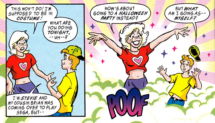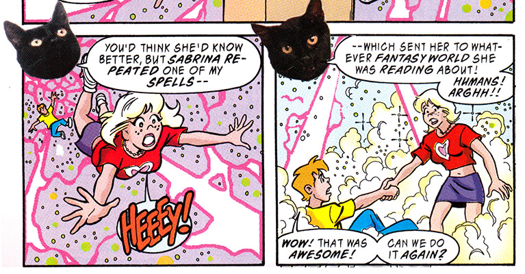 Sabrina can use her magical powers to go inside a comic book full of great writing and and art. But first, she has to find a comic book full of great writing and art. Good luck with that.