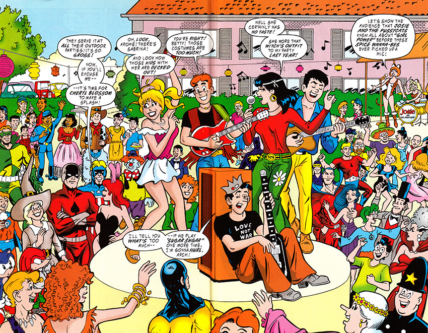 Halfway through the story we finally get to Archie and the gang, playing all their hits to a crowd of forgotten Archie characters and creative-staff caricatures, while Josie and the Pussycats throw shade at the Spice Girls. Relax Pussycats, you'll get a feature film too.