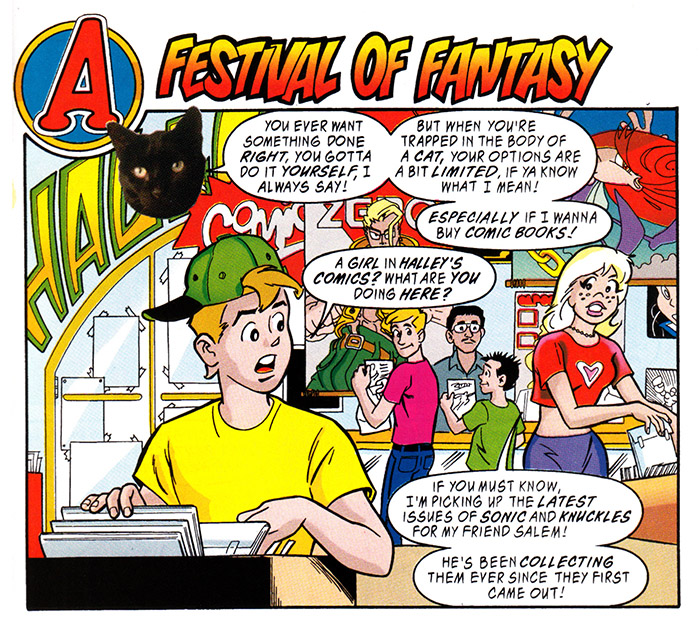 Archie was one of these publishers, producing giveaway comics starring their most popular characters! And by that I mean Sonic The Hedgehog and Sabrina The Teenage Witch. Sure, Archie is there too. But did he have a popular TV show or a popular video game franchise at this time? He had neither, sorry "Riverdale Rescue" fans.