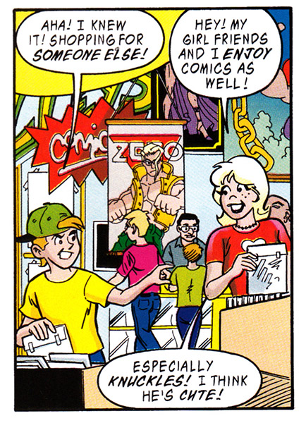 You can't neg THIS girl out of the comic shop, buddy! She found out they make comic books starring cute video game characters!