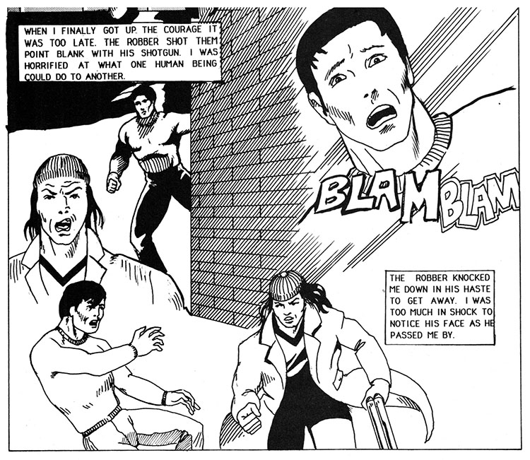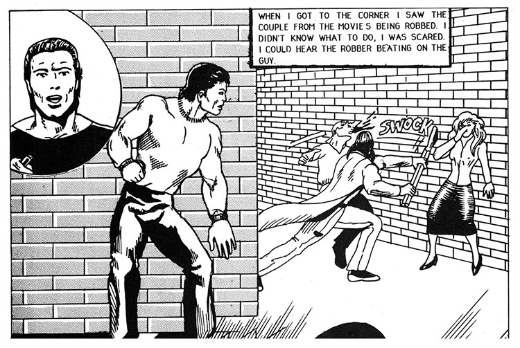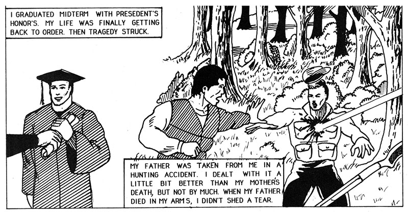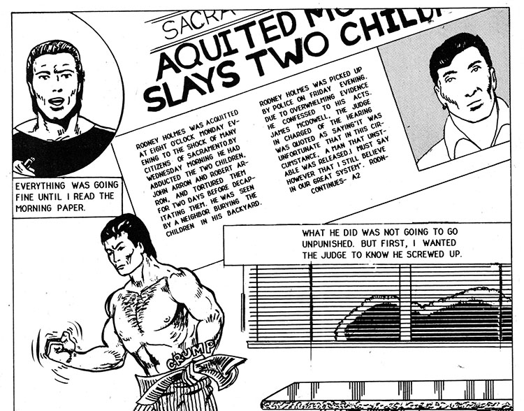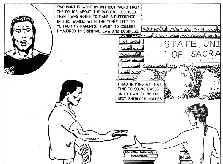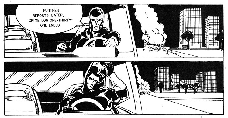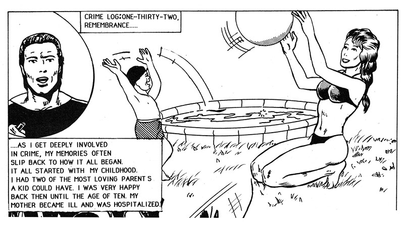 Crime Log One Thirty Two: once again a comic book promises exciting action and adventure and completely derails itself by wasting pages detailing this weirdo's entire life story, including how the only recollection of his mother is that she was a bikini model. Save it for your therapist, buddy!