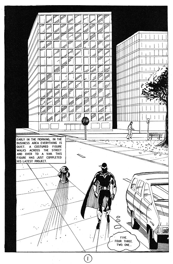 "A costumed figure has just completed his latest project... learning to count... BACKWARDS."