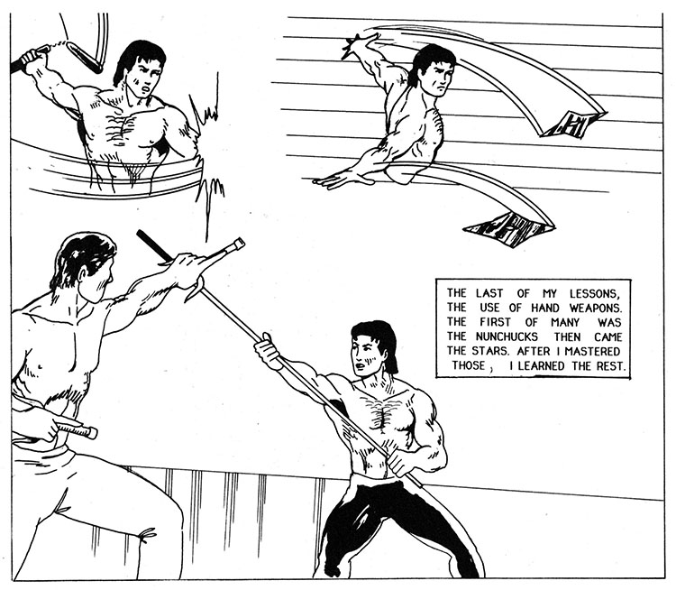 First comes the nunchucks, and then the stars, the stars you see when you whack yourself in the skull trying to whip those nunchucks around.