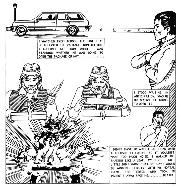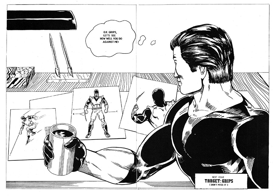 Okay Grips, let's see how well you do against me! I'm just going to use all my kung-fu sharpshooting skills, and then plant a bomb in your house and blow you to smithereens, I guarantee you won't grip your way out of that one! Mainly, because there was never a next issue of Dark Assassin, perhaps due to some defective wiring, a bundle of dynamite, and one late night too many spent with the soldering iron.