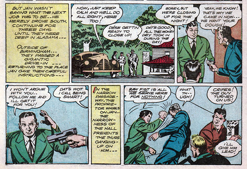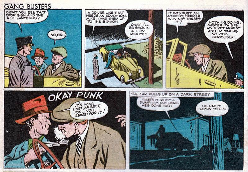 Today guns make noises like 'bang' or 'pow,' but back in the 40s you could buy pistols with all kinds of interesting reports, like the popular "Okay Punk" model.
