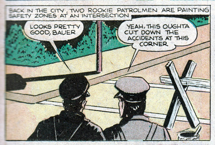 Looks pretty good, Bauer. Putting this giant barricade in the middle of the street really ought to cut down on accidents at the corner, because they'll be replaced by accidents in the street itself.