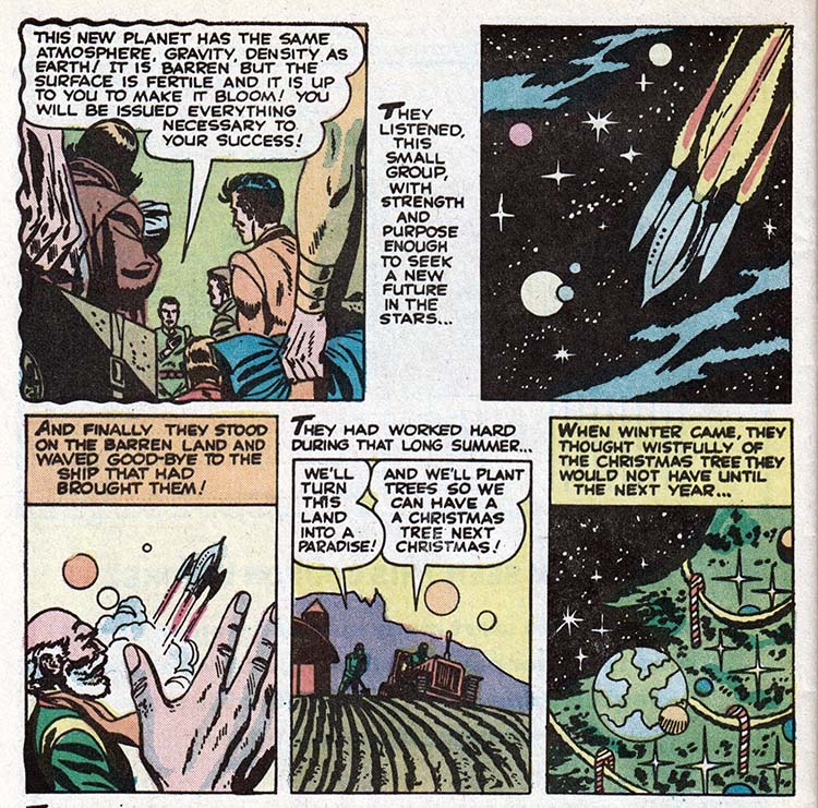Anyway they arrived at their new home and they started working hard planting crops and they were pretty sure they knew everything they needed to know about making agriculture work on a strange planet, but then somebody said something about planting a tree so that they'd have a Christmas tree for Christmas in a year, and somebody else said, I think trees take a lot longer than that to grow, and then they all realized they'd just been faking it all this whole time, and that they were all going to starve.
