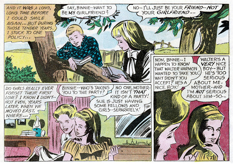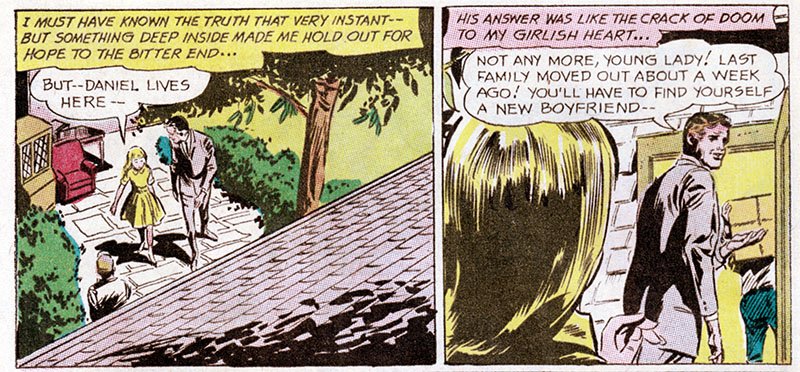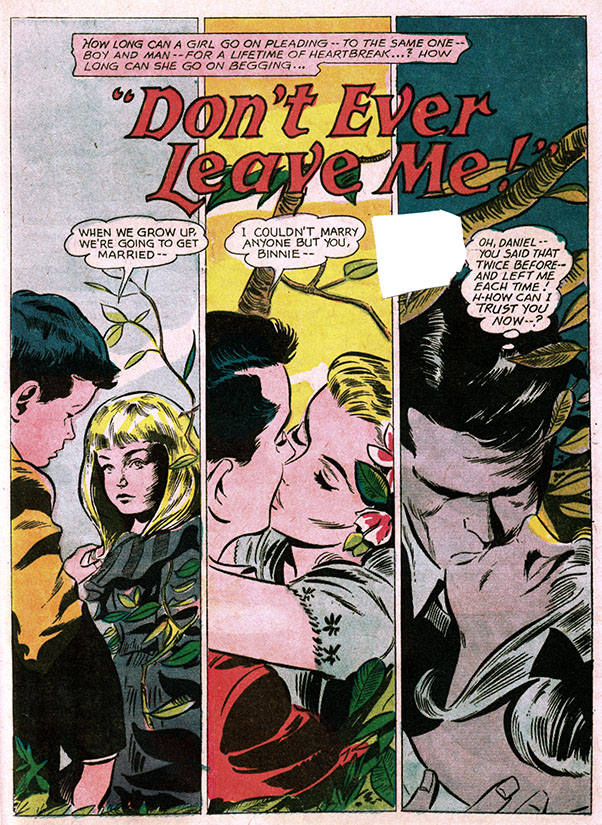 How long can a girl go on pleading with a boy before she starts wondering if it's her? And how damaged can a comic book get before responsible retailers will withdraw it from sale? Apparently this damaged. Sorry about the hole.
