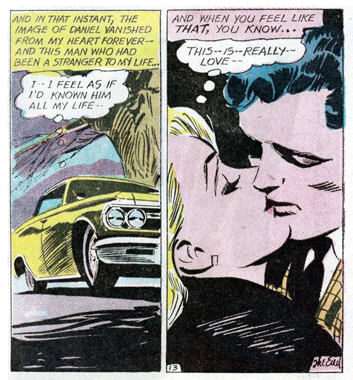 Now this - where some total stranger stalks her, waiting for his chance to swoop in to the rescue, not creepy at all - a total stranger that she thinks is somebody completely different for a disturbingly long time - THIS is REALLY love? It's really something, that's for sure.