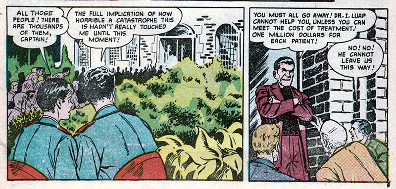 Usually you see the phrase "surprisingly hairless" only in connection with somebody's new pet cat. But here it's used to describe Dr. I. Luap, the director of this whole million-dollar-treatment scheme. What an odd name. I wonder if we should spell it backwards.