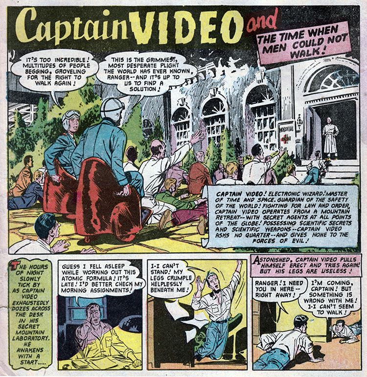 Captain Video! Electronic wizard, master of time and space, guardian of world safety, asker for no quarters, and useless from the waist down - at least that's what his girlfriend says! I'm joking, of course. There are no women in this story.