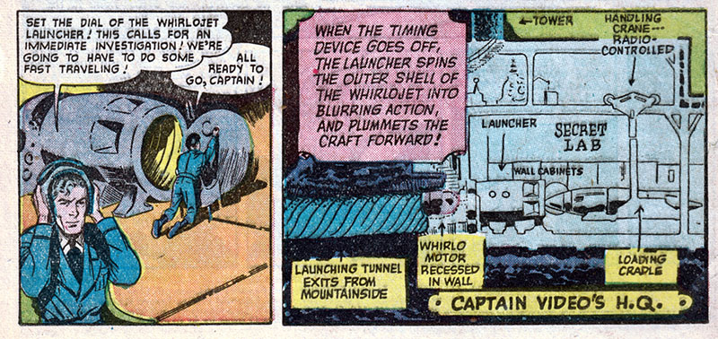 If Captain Video needs to get somewhere fast, he merely climbs into a giant artillery shell and has himself whirlo-plummetted across the landscape. It just makes sense.